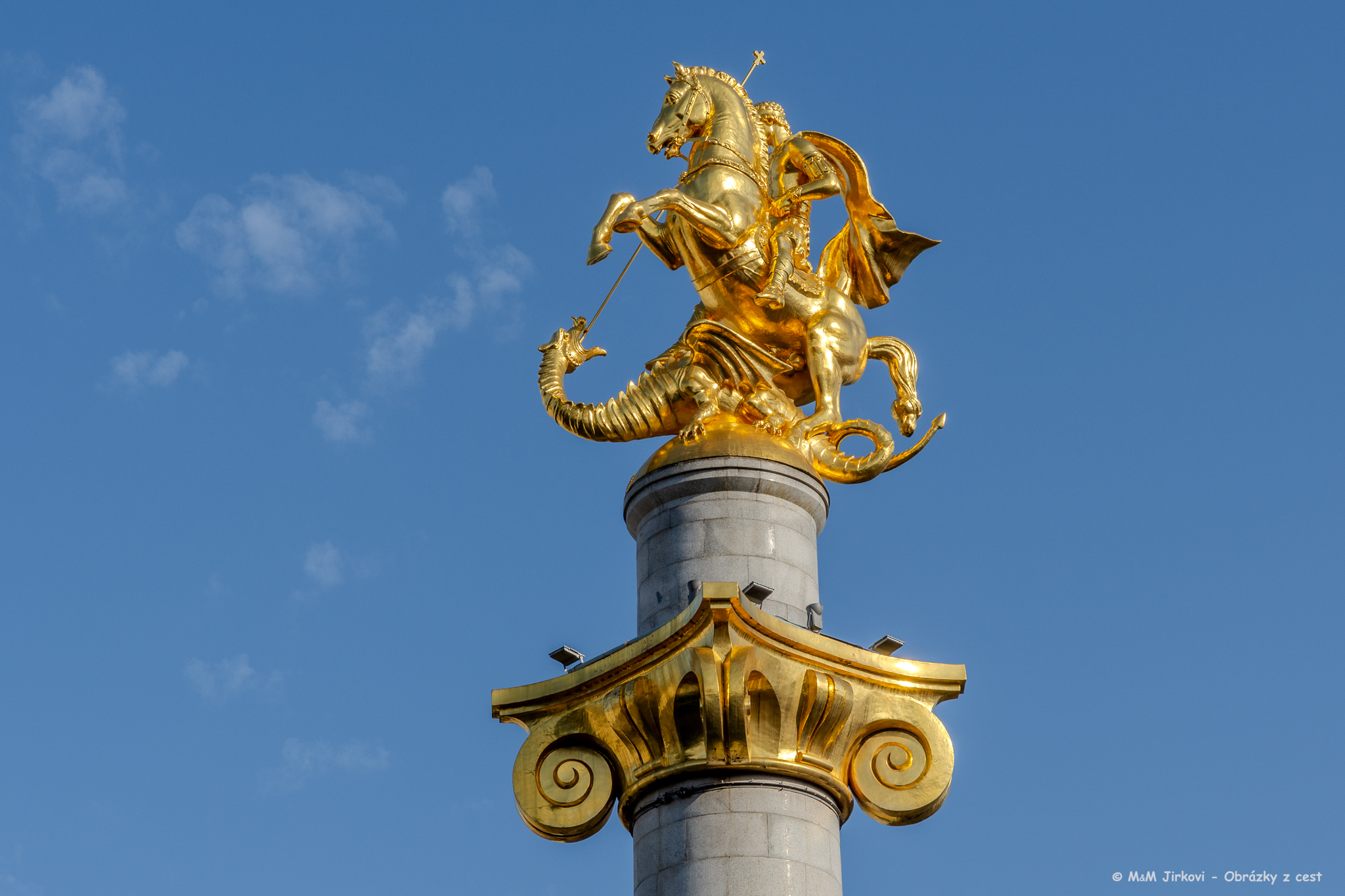 dědictví sovětské éry, gruzínci nepříliš oblíbené. Mimochodem, socha je ze dřeva potaženého hliníkem. - Pohled na současné Tbilisi