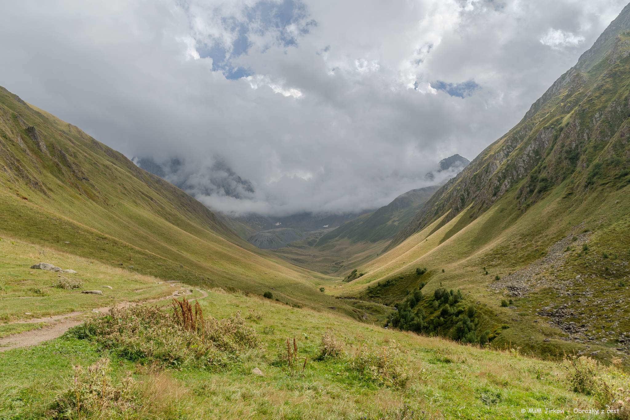 Celkem 13,5 km, výstup 448 m, sestup 1403 m. - Datvis-Jvari Pass (2677 m)